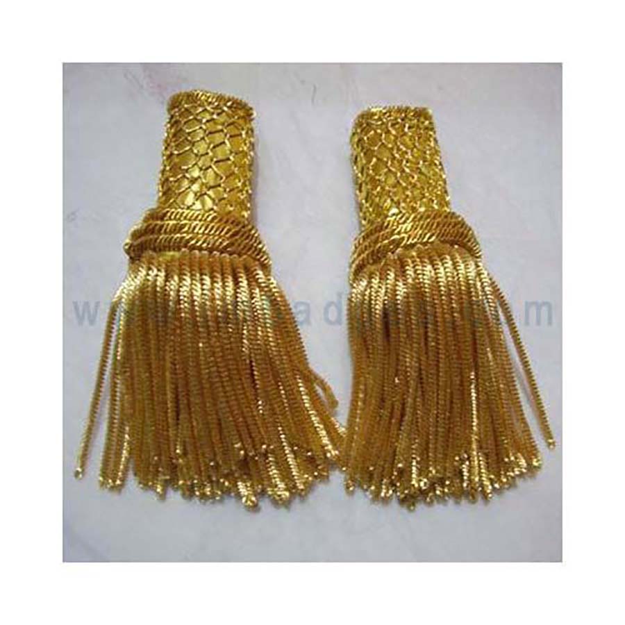 We are Manufacture and Exporter of Military Trimming & Uniform Accessories - Army Trimming & Uniform Accessories - Navy Trimming & Uniform Accessories - Air-Force Trimming & Uniform Accessories - Marine Trimming & Uniform Accessories - School Trimming & Uniform Accessories - College / University Trimming & Uniform Accessories - Club Trimming & Uniform Accessories - Musical Instrument Trimming & Uniform Accessories - Band Trimmings & Uniform Accessories - Trimming Aiguillettes - Trimming Shoulder Cords - Trimming Dress Cords - Trimming Lanyards - Trimming Whistle Cords - Trimming Bagpipe Cords - Epaulettes - Sleeve Epaulettes - Cord Epaulettes - Braids Epaulettes - Bullion Fringe Epaulettes - Without Fringe Epaulettes - Silk Fringe Epaulettes - Mylar Fringe Epaulettes - Shoulder Boards - Cord Shoulder Boards - Cap Cords - Chin Cords - Hat Cords - Cap Straps - Braid Cap Straps - Leather Cap Straps - Cord Cap Cords - Tassels - Tassels with Cords - Bullion Fringe Tassels - Silk Fringe Tassels - Mylar Fringe Tassels - Tassels without Cords - borlas, Recortes y Uniforme Accesorios - pompons, Passementerie et Accessoires uniforme - nappe, Passamanerie e uniforme accessori - Quasten, Beilagen und Uniform Zubeh?r - Bullion Fringes - Silk Fringes - Mylar Fringes - Cotton Fringes - Sword Knots - World War Sword Knots - Civil War Sword Knots - Military Sword Knots - Portepees - Chevrons - Chevrons with Braids Bars - Ranks - Sashes - Silk Sashes - Wool Sashes - Braids Sashes - Barrel Sashes - Band Sashes - Military Sashes - Regimental Sashes - Club Sashes - Shooting Club Sashes - Hackles - Plumes - Father Plumes - Bullion Wire Braids - Mylar Braids - Silk Braids - Bullion Wire Laces - Mylar Laces - Silk Laces - Medal Ribbons - Silk Ribbons - Caps - Officer Caps - Baseball Caps - Military Officer Caps - Army Officer Caps - Navy Officer Caps - Air Force Officer Caps - Word War Caps - Civil Capi - Police Caps - Berets - Military, Army, Navy, Air-Force, Police Berets - Silk Ties - Plain ties - Bow Ties - Military, Army, Marine, Air Force, Police, Security, Clubs Webbing Belts - Military, Army, Marine, Air Force, Police, Security, Clubs Webbing Braids Belts - Military, Army, Marine, Air Force, Police, Security, Clubs Leather Belts Using Gold, Silver Bullion Wire thread - Gold and Silver Mylar Thread - Gold, Red, Yellow, Green, Blue, Black, White, Light Blue Silk thread and any coloured cotton threads. We can make to any size, any sketch, drawing, or picture. In a couple of days we can send the scanned image of the first sample and within a week the actual sample is in the customer?s hands.
