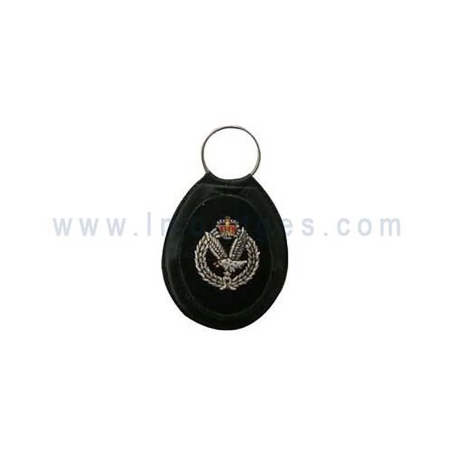 We are Manufacture and Exporter of Hand Embroidery Key Fobs - Key Rings with your own design - Labels Key Fobs, Key Rings - Crests Key Fobs, Key Rings - Logos Key Fobs, Key Rings - Insignia Key Fobs, Key Rings - Emblems Key Fobs, Key Rings using Gold, Silver Bullion Wire thread - Gold and Silver Mylar Thread - Gold and Silver thread Wire and any coloured cotton threads. We can make to any size, any sketch, drawing, or picture. In a couple of days we can send the scanned image of the first sample and within a week the actual sample is in the customer?s hands.