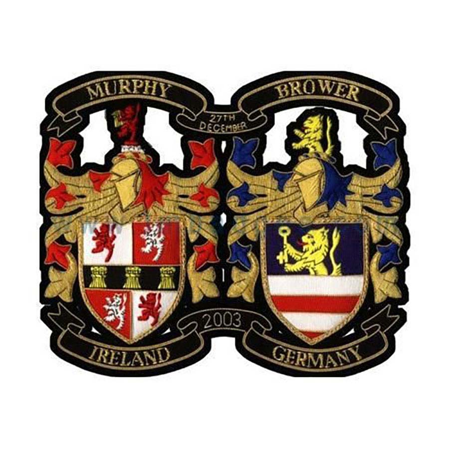 We are Manufacturing and Exporter of Hand Embroidery Family Crests ▫ Coats of Arms ▫ Heraldic Crests ▫ Family Names ▫ Scottish Clan Crests ▫ Name Histories ▫ Family Name Heritage ▫ Regimental Crests ▫ Armed Forces - Service - Sports Badges ▫ Wedding, Anniversary & Heirloom Gifts ▫ European Names Research ▫ Heraldic Banners ▫ Family Plaques, Clan Badges, Heraldic Crest, Heraldic Emblems using Gold, Silver and any Coloured Bullion and coloured cotton threads.